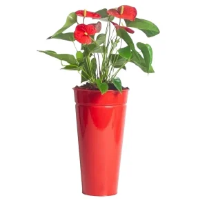 1. آنتوریوم قرمز در گلدان مشکی مات برای نشیمن مینیمال