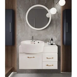 ست کابینت روشویی آزالیا مدل ellipse04 به همراه آینه بک لایت