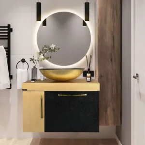 توجه داشته باشید که رنگهای تیره و متریالهای مات در سال ۲۰۲۵ جایگاه ویژهای در طراحی داخلی یافتهاند. در واقع شما می توانید با استفاده از کابینت روشویی و آینه با رنگ مشکی مات یا تیره، جلوهای بسیار خاص و لوکسی به حمام و سرویس ببخشید.