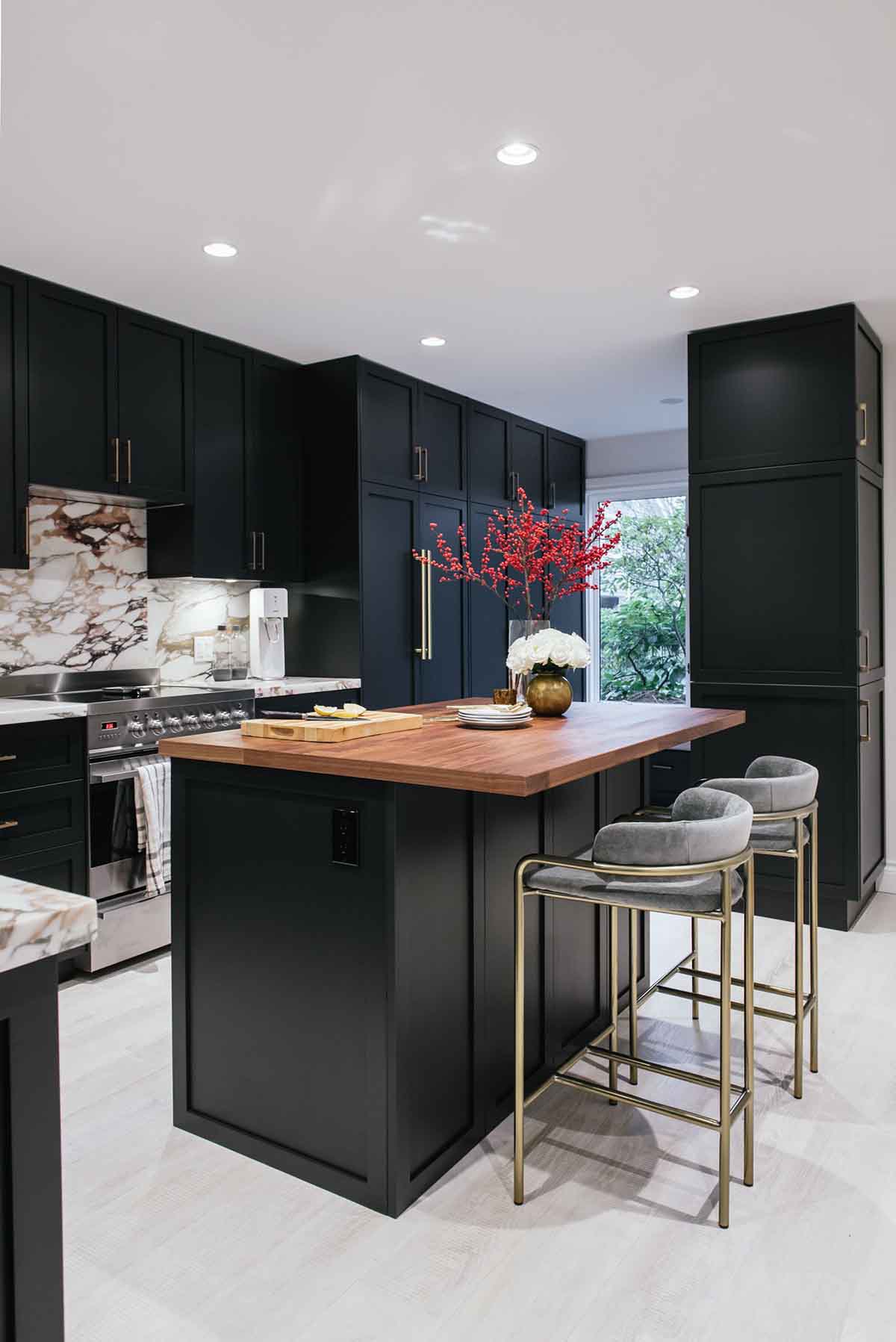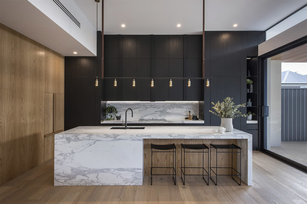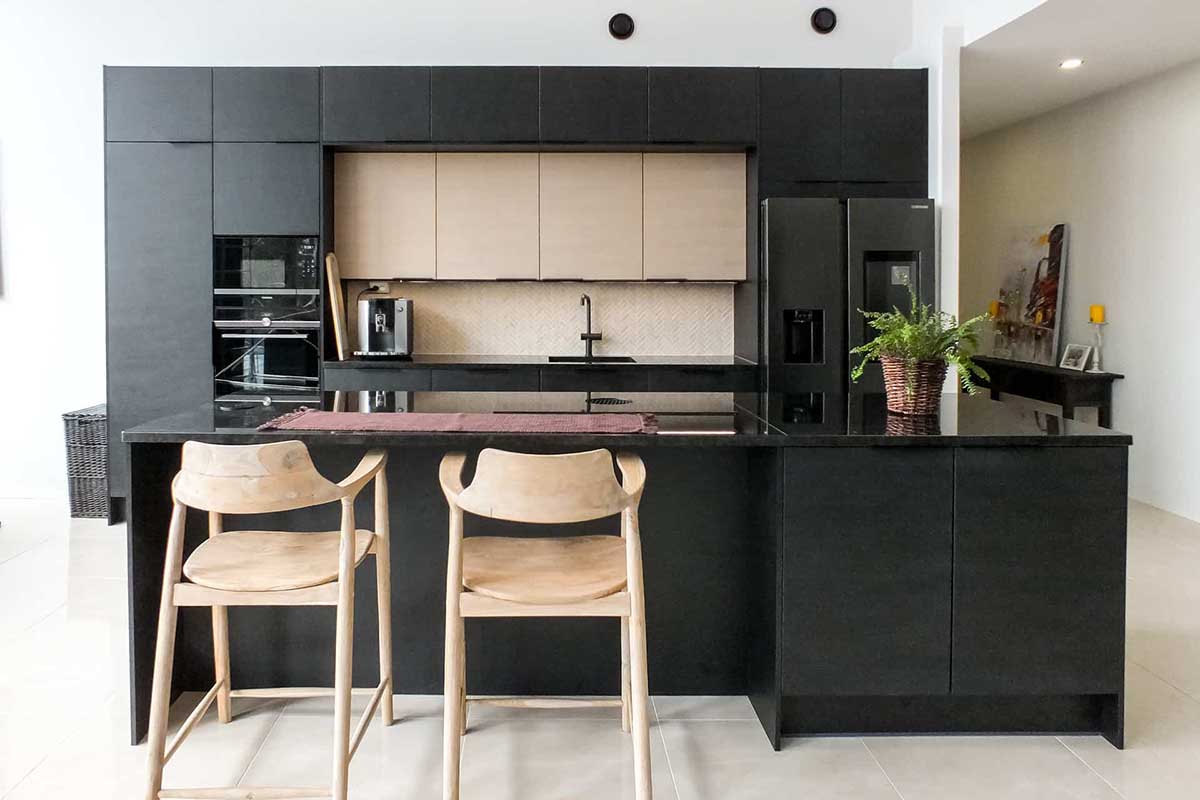 3. کابینت های مشکی در آشپزخانه اپن، جزیره یا پنتری دار: