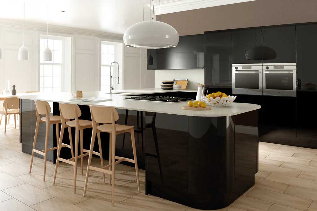 مطمئنا نه! در این حالت باید کابینت هایی با رنگ روشن را در کنار کابینت مشکی نصب کنید که نحوه طراحی آن ها به دو صورت زیر می تواند باشد: