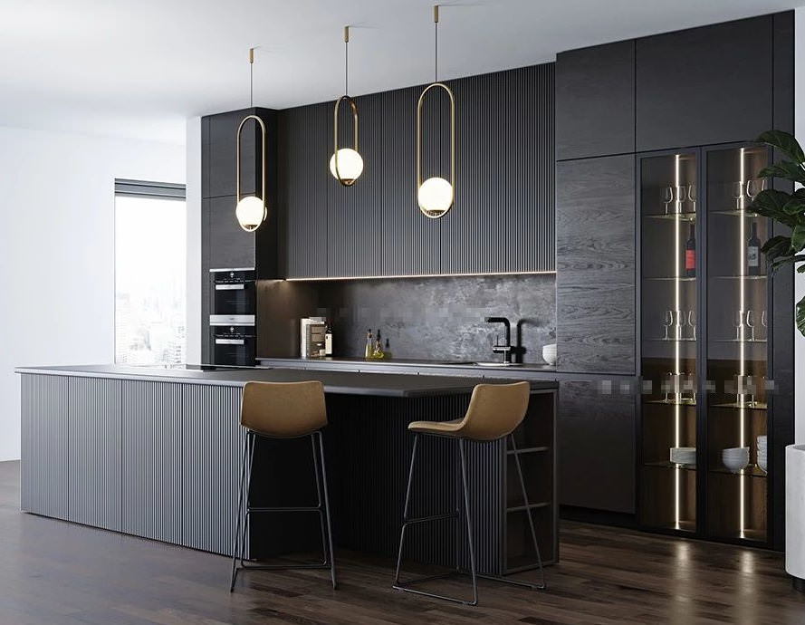 کابینت مشکی یکدست ام دی اف مات در دکوراسیون آشپزخانه نئوکلاسیک