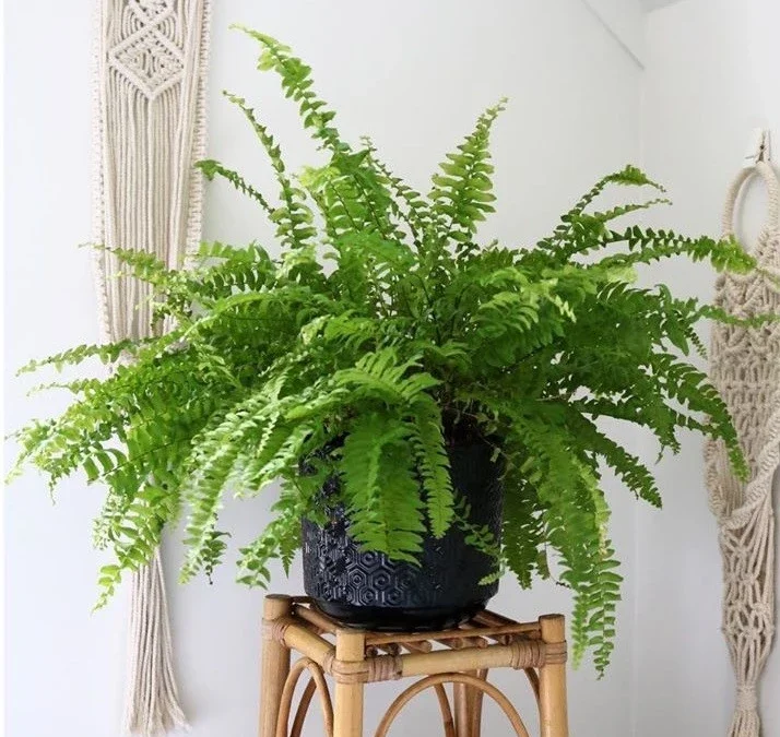 ایده: برای داشتن نمایی لوکس و مدرن، میتوانی سرخس بوستون را داخل گلدانهای سرامیکی یا فلزی با رنگهای ترند مثل مشکی مات، طلایی یا سفید براق قرار دهی. قرار دادن این گلدانها روی پایههای فلزی با طراحی مینیمال، ظاهری شیک و مدرن میسازد.