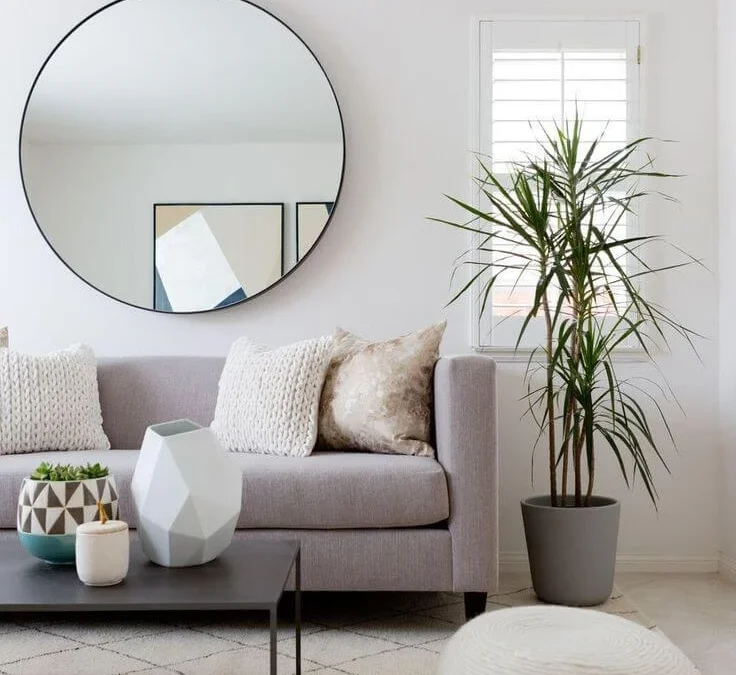 5. آینه دکوراتیو گرد بزرگ پشت مبل