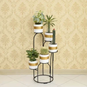 اگه فضای کمی داری اما کلی گلدون کوچیک داری، مدلهای پلکانی و نردبانی هم به کارت میان و هم نمای بصری زیبایی ایجاد میکنن. این نوع استندهای گلدان انتخاب هوشمندانهای برای بالکن، لابی یا راهرو هستند.