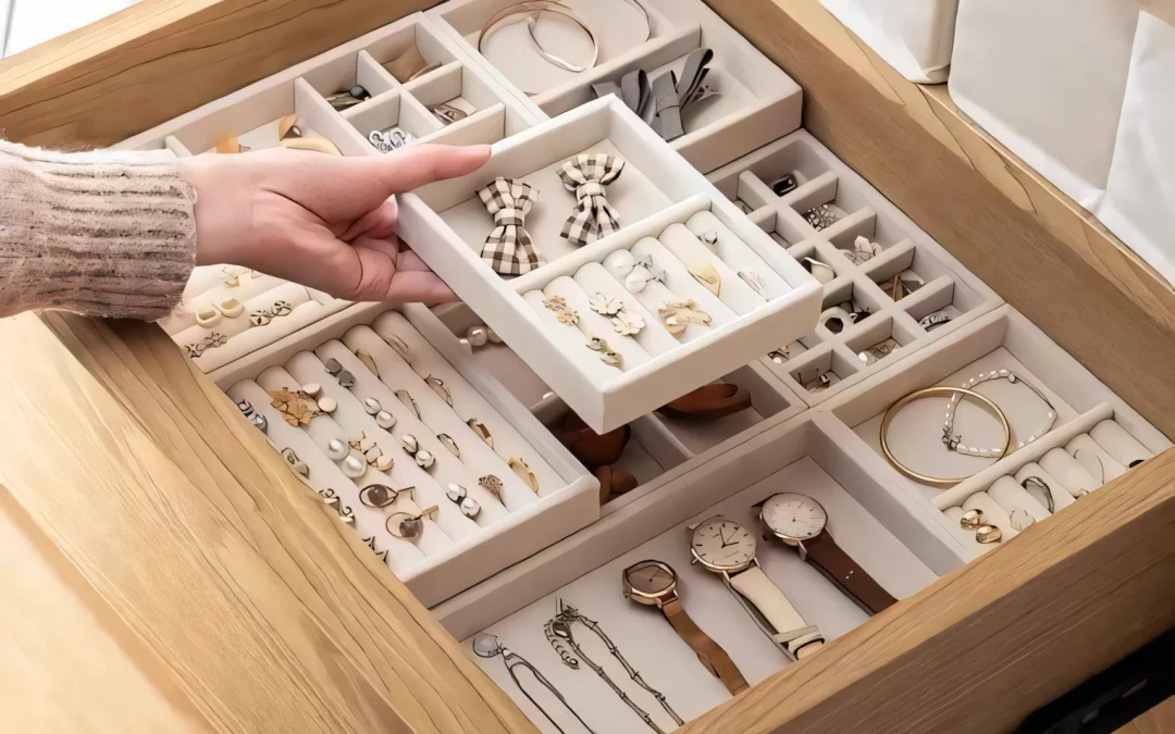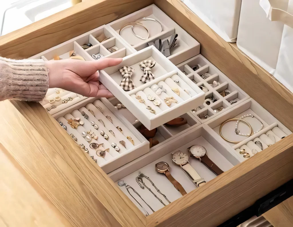 ۱. ارگانایزرهای کشو برای نظمدهی به زیورآلات و اکسسوریها