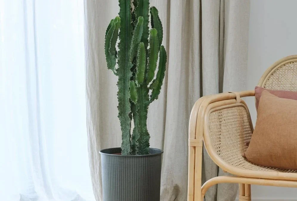 اگه به سبک‌های گرم‌تر و ارگانیک‌تر علاقه‌مندی، این ایده رو از دست نده. افوربیای کوتاه در گلدان‌های بافت‌دار مثل حصیری می‌تونه یه تضاد قشنگ بین ظاهر خشن گیاه و بافت نرم گلدون بسازه.