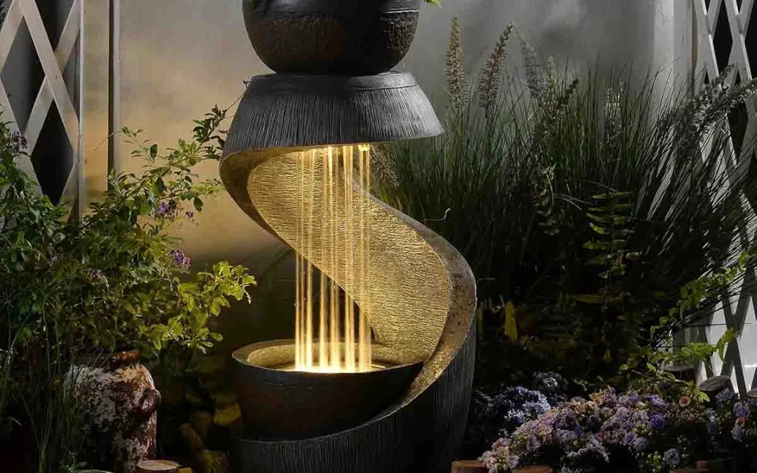 ترکیب ساختار عمودی با فرم مارپیچ حرکت آب، این مدل رو به یه قطعه دکور مجسمهگونه تبدیل میکنه. برای گوشهی تراس، ورودی یا لابی داخلی خونهت مناسبه و حس طبیعی و طراحیای حسابشده ای داره.