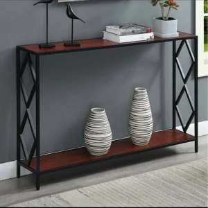 میز کنسول فلزی مشکی با صفحه چوبی روستیک