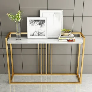 ۳. کنسول فلزی طلایی و مرمر سفید؛ برای دکوراسیون لوکس و کلاسیک
