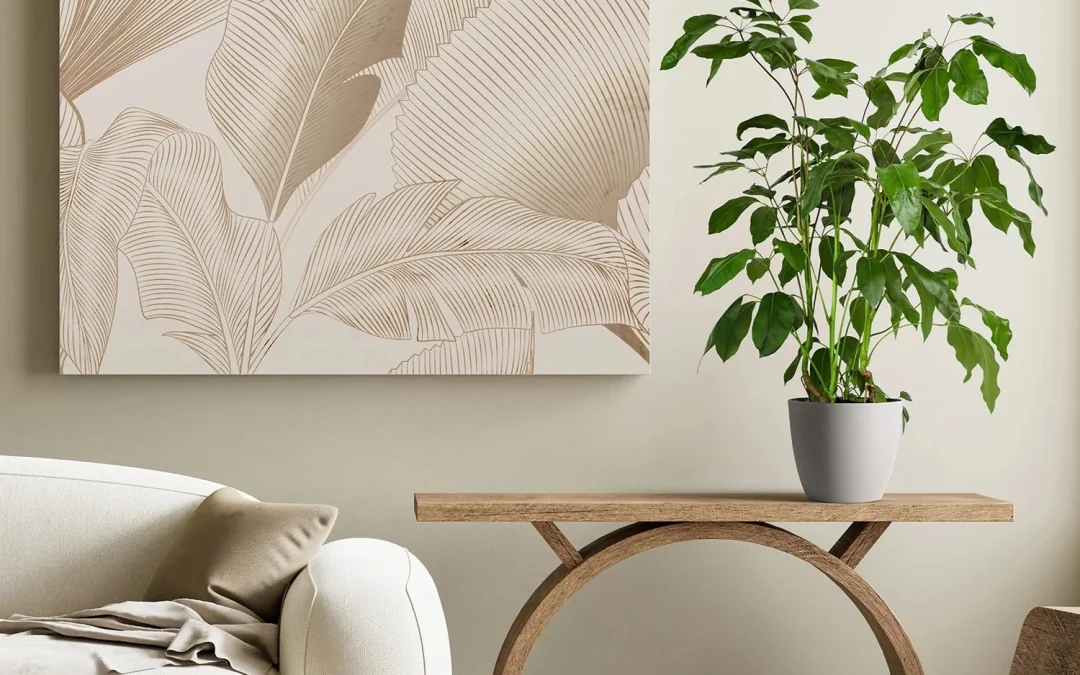 بذار ورود به خونهات مثل ورود به یه هتل پنج ستاره باشه! یه شفلرا آمیت توی گلدون برنزی یا طلایی کنار کنسول ورودی، با یه آینه بزرگ و نور دکوراتیو دیواری؟