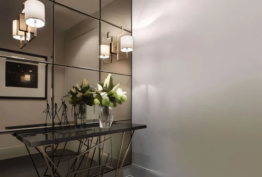 در سبک مینیمال یا اسکاندیناویایی، استفاده از آینههای مربعی بدون قاب خیلی کاربردیه. این نوع آینهها وقتی بدون فاصله و دقیق کنار هم قرار میگیرن، یه سطح یکنواخت و براق میسازن که نور رو به شکل دراماتیک منعکس میکنه. برای فضاهای کوچک مثل ورودی یا راهرو خیلی مناسبه.