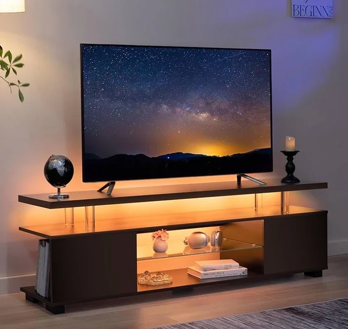 - میز تلویزیون با نورپردازی LED: جلوهای مدرن و خاص به نشیمنت میده و تماشای تلویزیون رو لذتبخشتر میکنه.