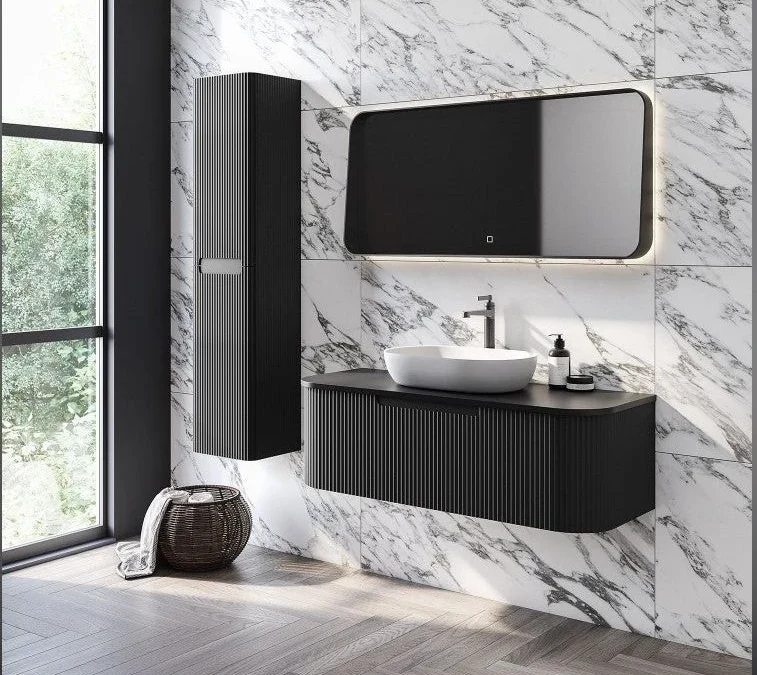 با صفحه رویی مرمری سفید یا شیرآلات برنزی ترکیب کن تا یه تعادل گرم–سرد فوقالعاده داشته باشی.