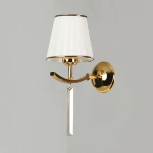 7. چراغ دیواری اتاق خواب با ترکیب فلز طلایی و کریستالهای کوچک – مناسب سبک لوکس و مدرن کلاسیک: