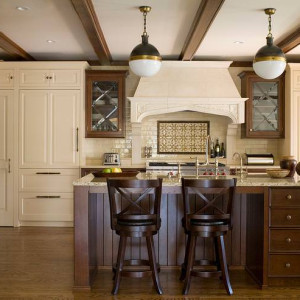 این که کابینت هایی که به دیوار نصب می شوند را به یک رنگ و کابینت اپن یا جزیره را به یک رنگ متفاوت انتخاب کنید. انتخاب بین قهوه ای یا کرم بودن کابینت های دیواری هم به سلیقه خودتان بستگی دارد.