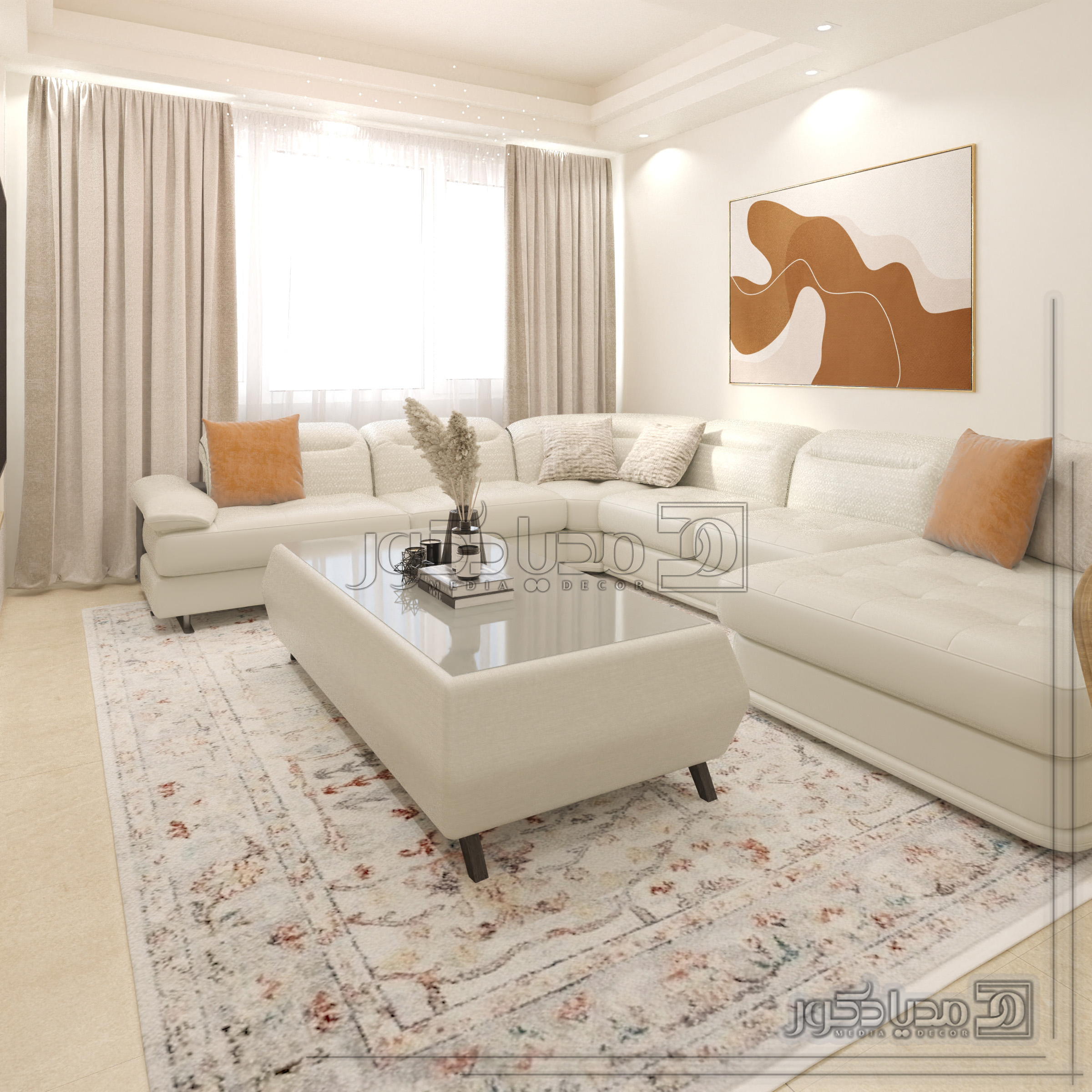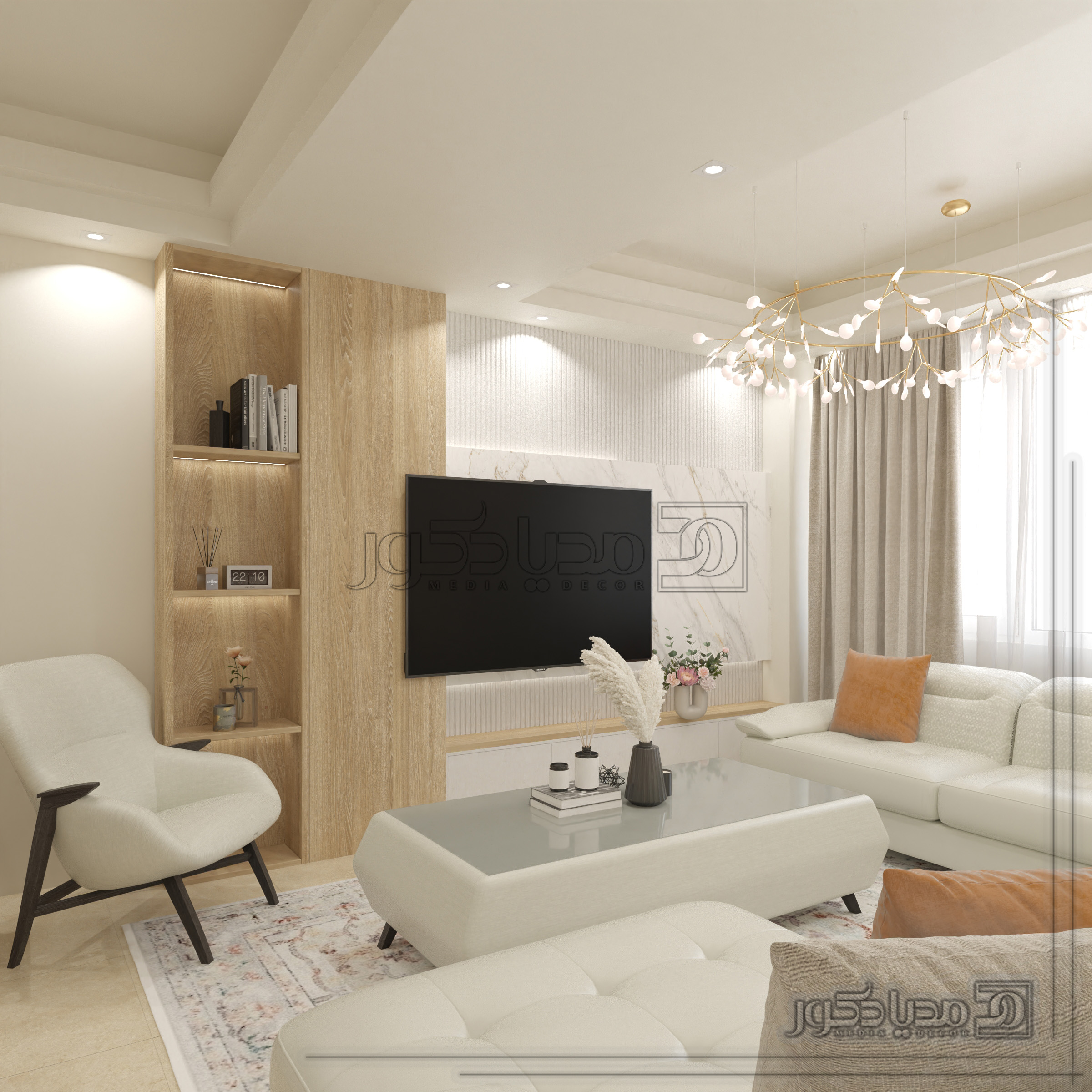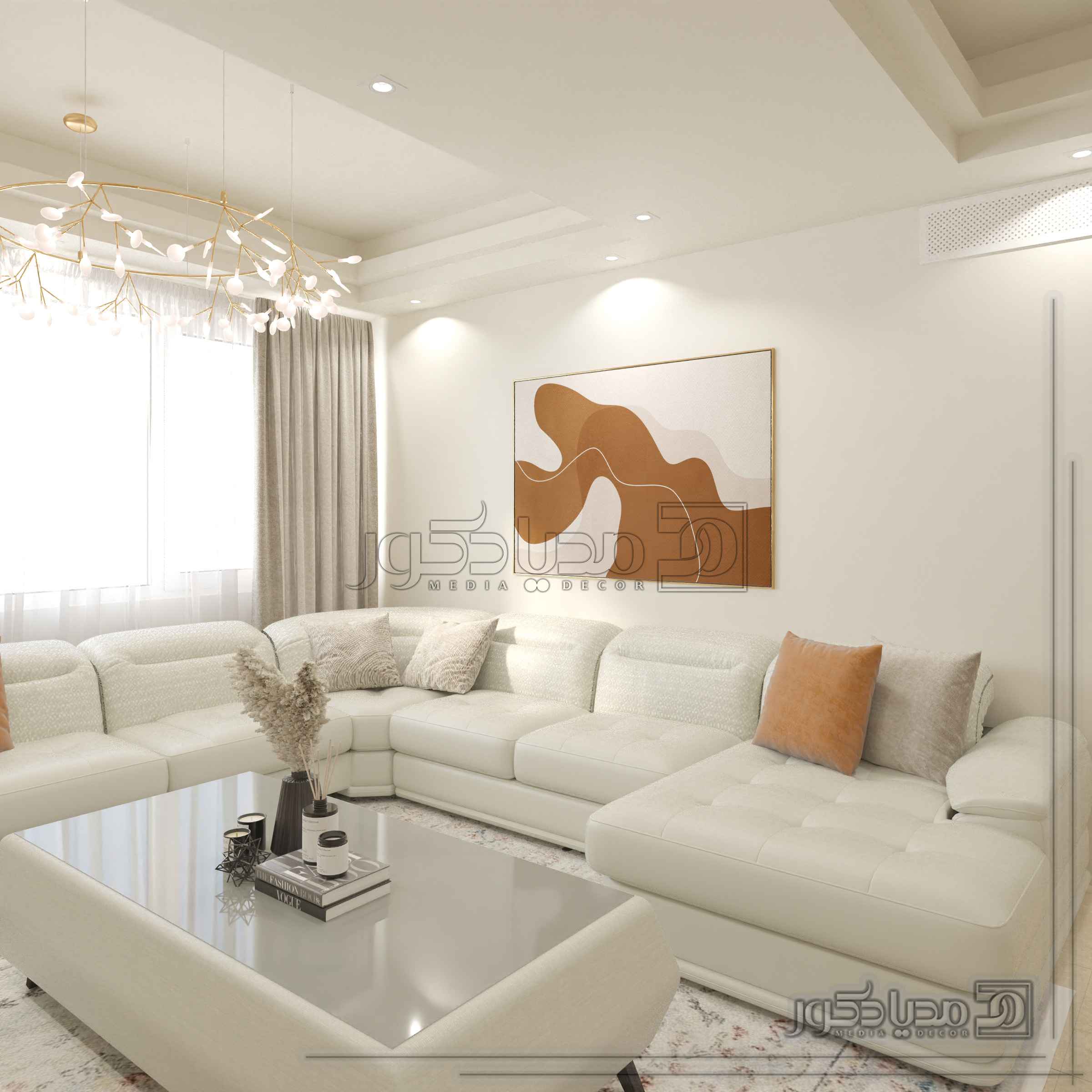 مبل و میز جلو مبلی مدرن نشیمن، قبل از شروع طراحی داخلی توسط کارفرما خریداری شده بود. و خب از ما خواستند که فضا را با باقی مبلمانی که نیاز دارد، طراحی و دیزاین کنیم.