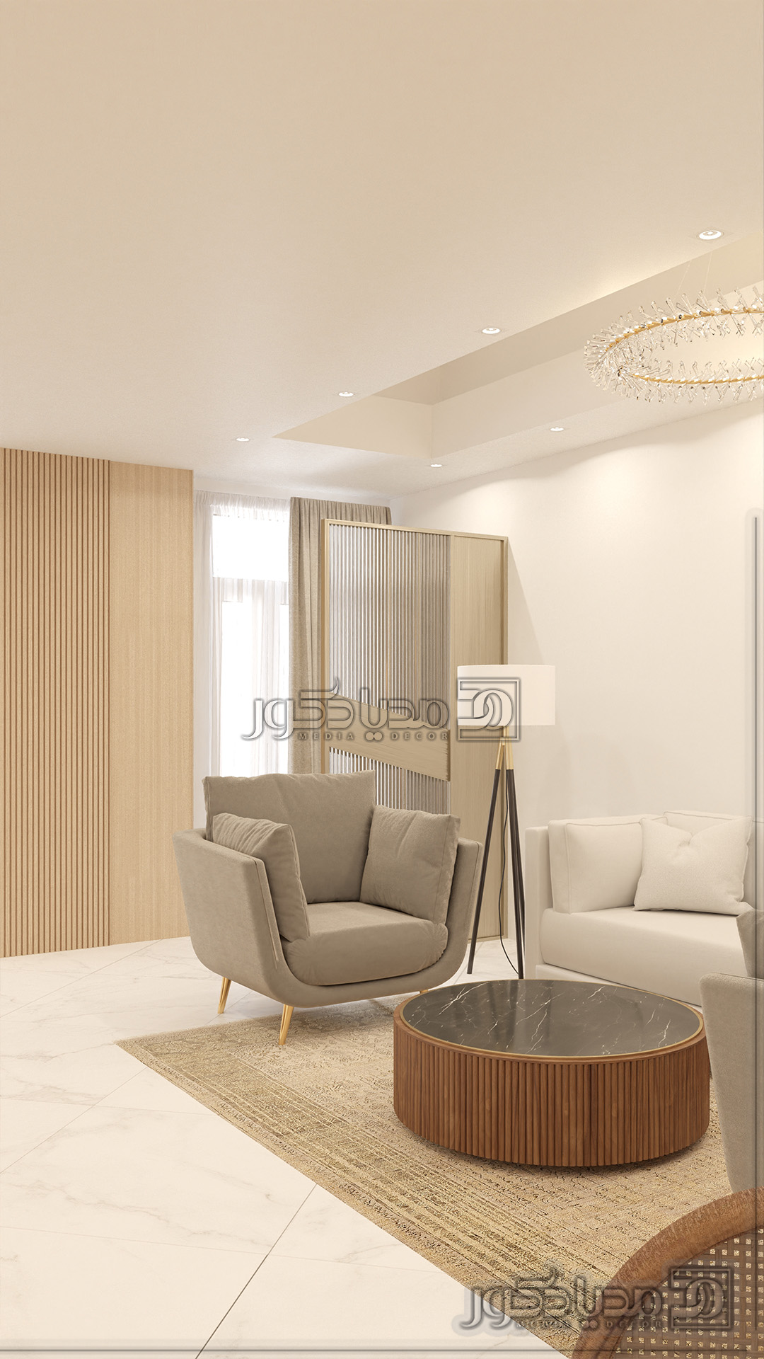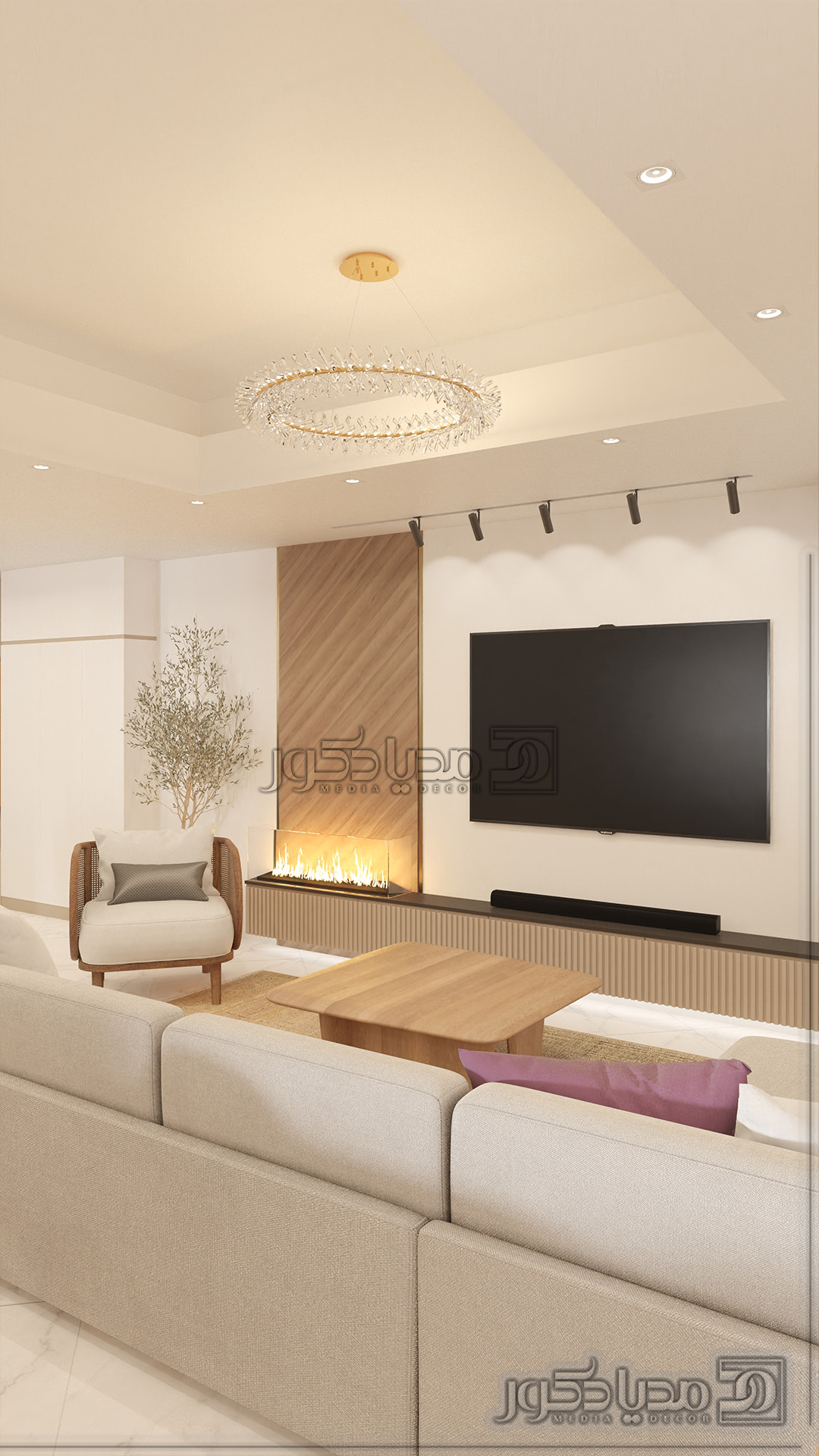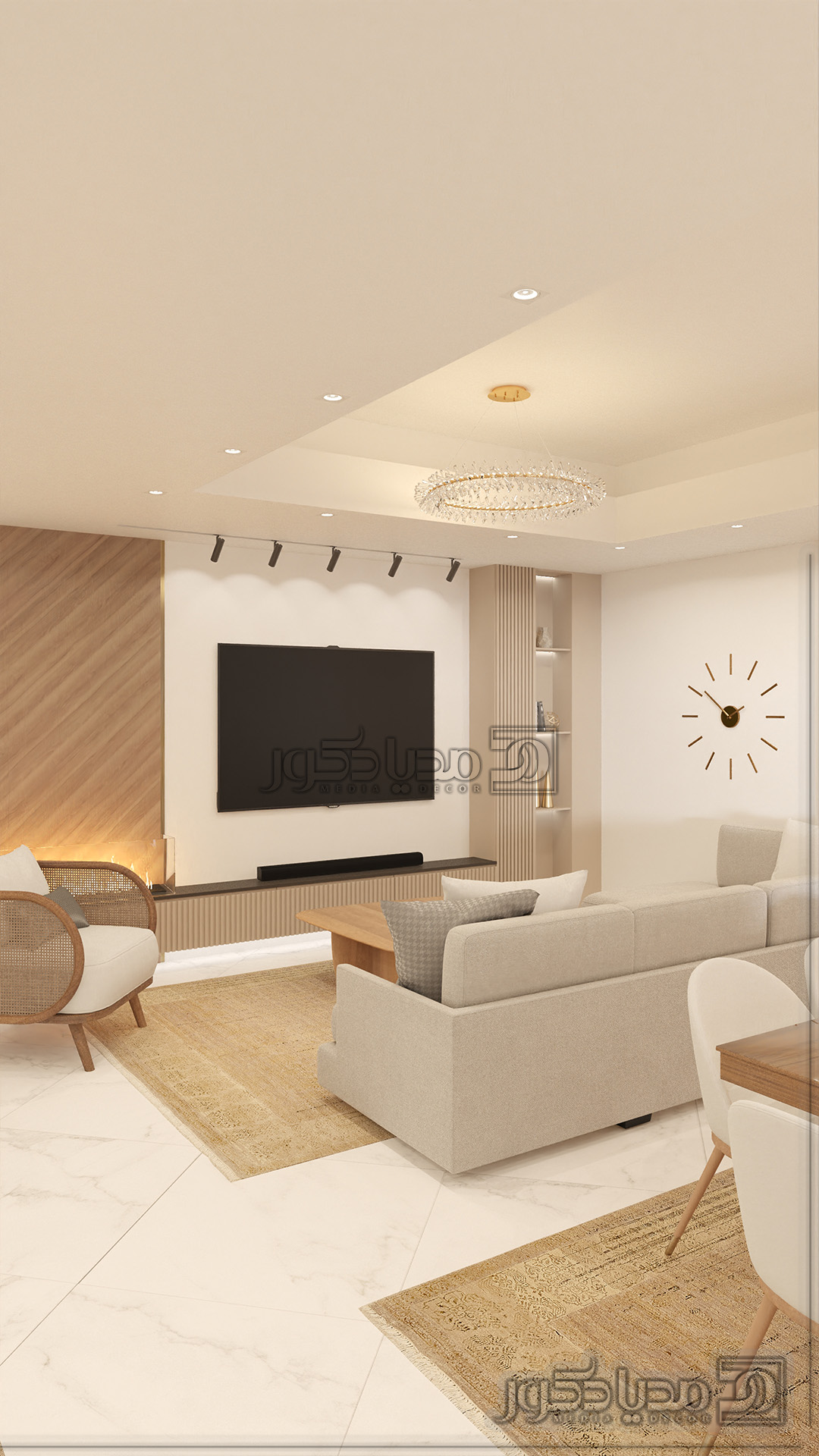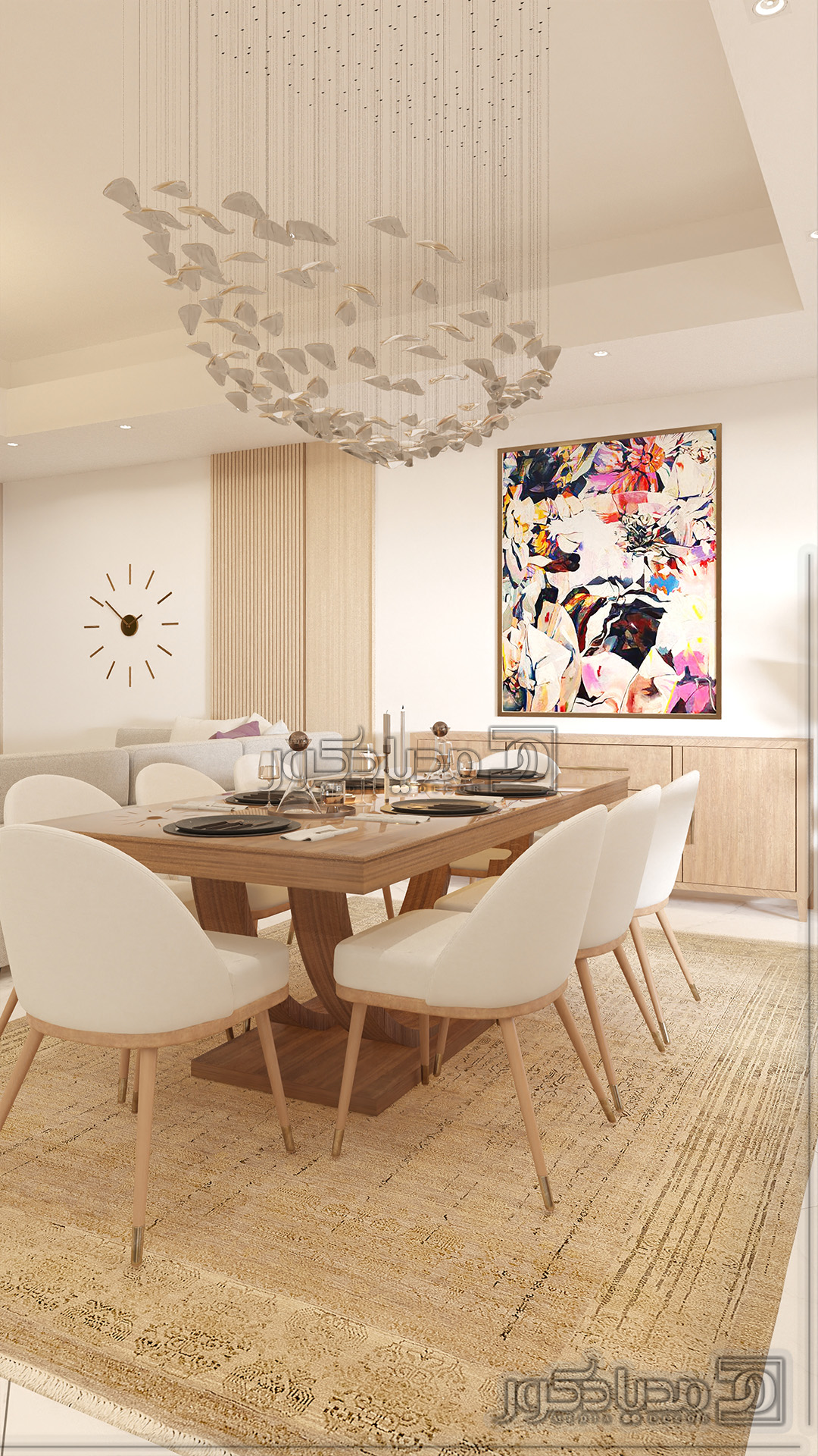 باید بگویم که این پروژه جزو خدمات طراحی داخلی و فرنیش مدیا دکور است، در این پروزه علاوه بر طراحی دیوار و اشپزخانه، به طراحی فضا با مبلمان هم پرداختیم. و در انتها تمام این مبلمان که موجود در بازار هستند را با ابعاد و فروشگاه ها برای خرید، معرفی کردیم.