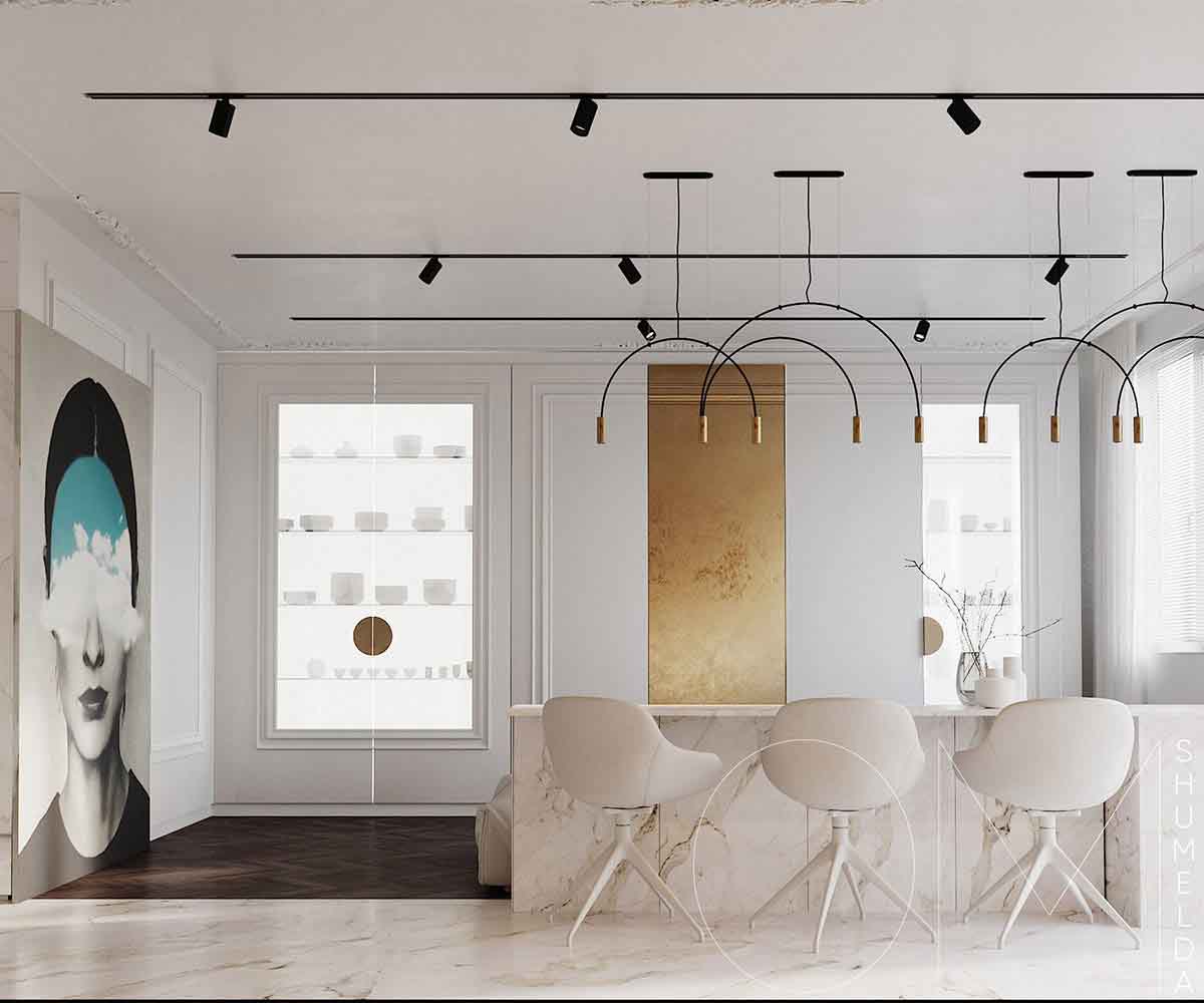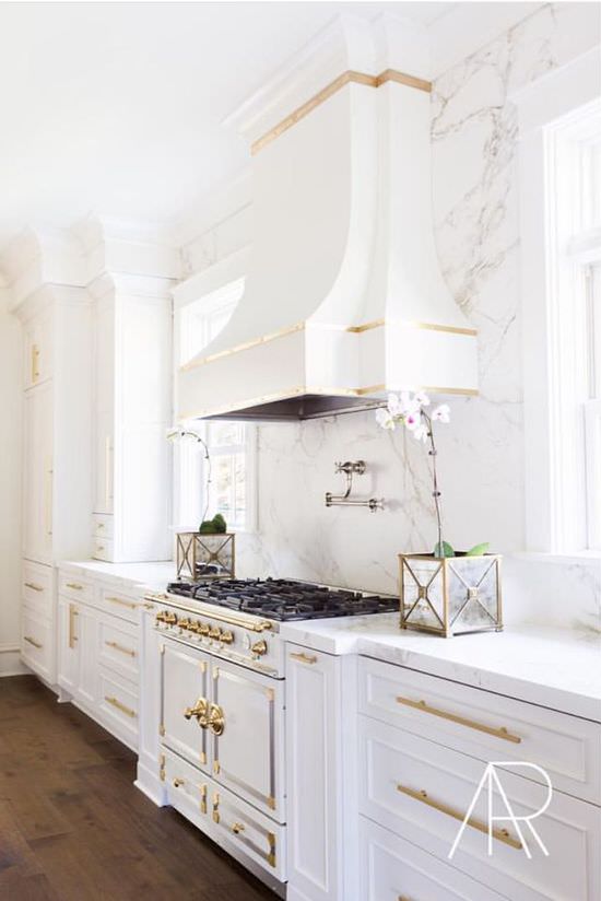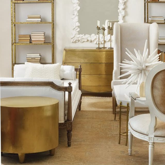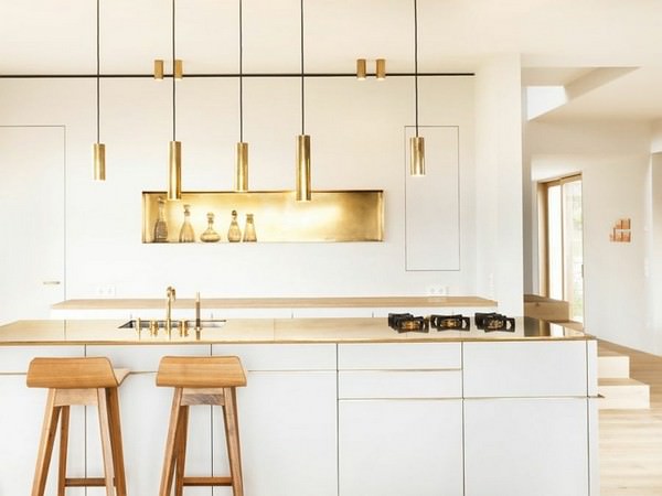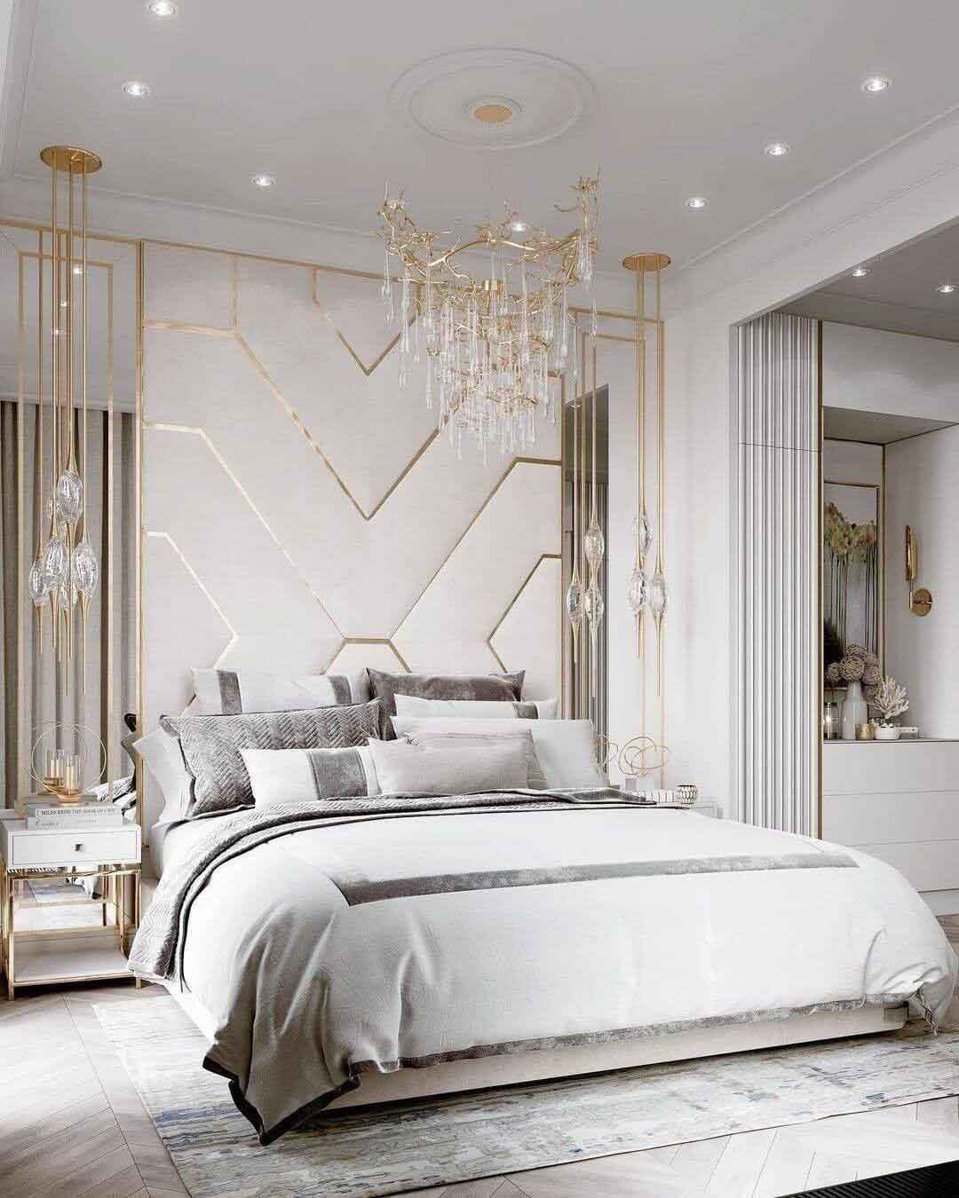 1. فضای داخلی با رنگ غالب سفید را با اکسسوری های طلایی زینت دهید: