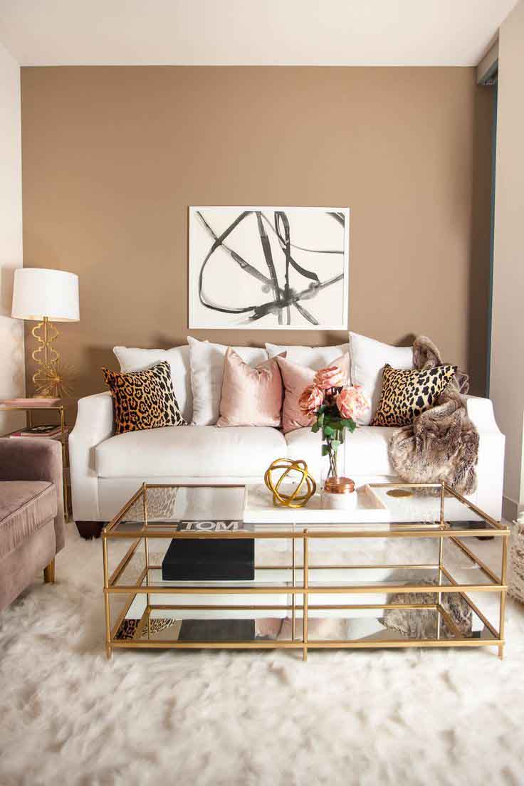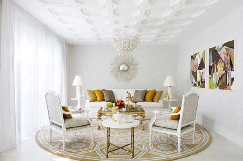 برای این کار کافی است که دیوارها و مبلمان بزرگ و اصلی را سفید در نظر بگیرید و به انتخاب خودتان برخی از عناصر دیگر فضا، مثل آویز، لوستر، آباژور، کوسن، فرش، میز و پایه ها را به رنگ طلایی بخرید.
