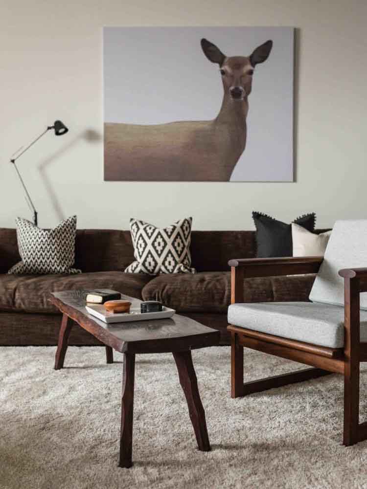 5. با رنگ قهوه ای دیوارها، عناصر مهم فضا را به چشم بیاورید: