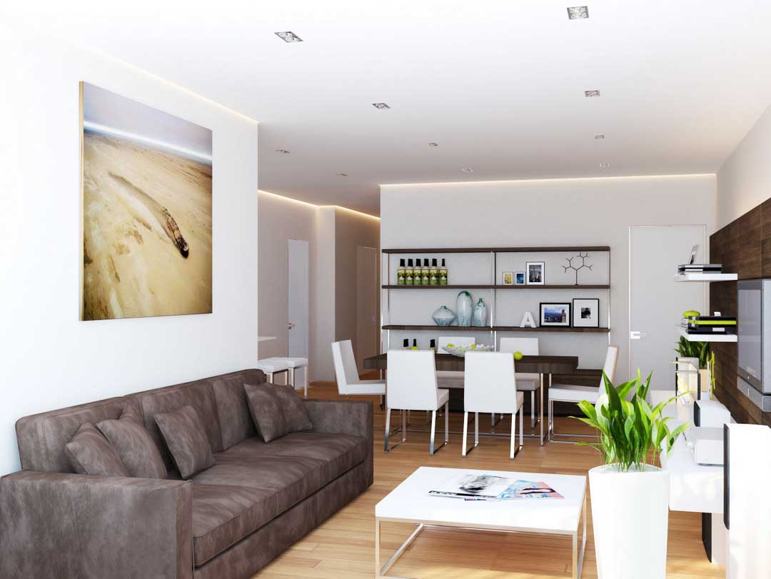 اگر خانتان کوچک و کم نور است و یا اگر فضای دلباز را می پسندید، دیوارها را با رنگ سفید یا قهوه ای روشن کاغذ دیواری یا نقاشی کنید.