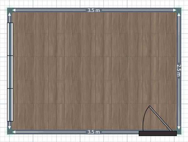 - اتاقتان را اندازه بگیرید. در این مثال اتاق 2.5 در 3.5 متر است که مساحتی حدود 9 متر مربع دارد.
