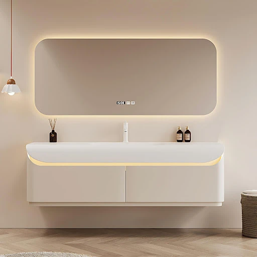 ۶. ست کابینت روشویی آینه و روشویی با نورپردازی مخفی