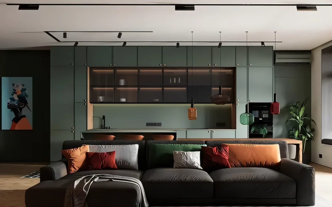 • نیاز به هماهنگی با سایر عناصر: اگر کل فضا تیره باشد، ممکن است محیط سرد و بی‌روح شود. پس باید حتما عناصر رنگی یا متریال گرم را وارد دکوراسیون کنی.