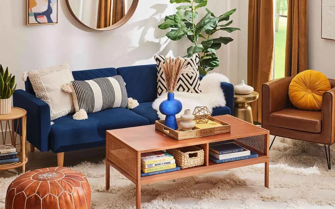 نحوه ست کردن مبل آبی در نشیمن و پذیرایی: