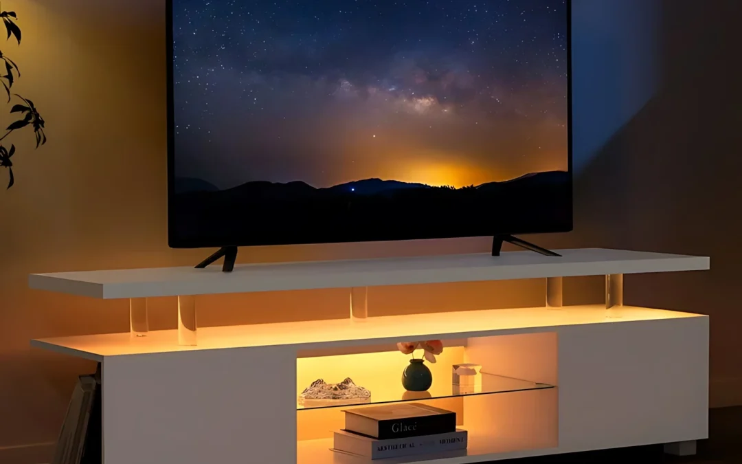 - اگر وسایل جانبی مثل دستگاه پخش، کنسول بازی یا ساندبار داری، میز با طبقات و کشوهای جادار را انتخاب کن تا همه وسایل در دسترس و منظم باشند.
