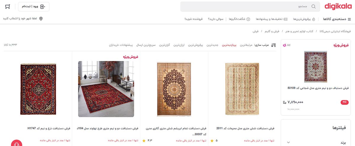 - فیلترهای آسان و کاربردی برای پیدا کردن فرش دستباف مدنظرتان