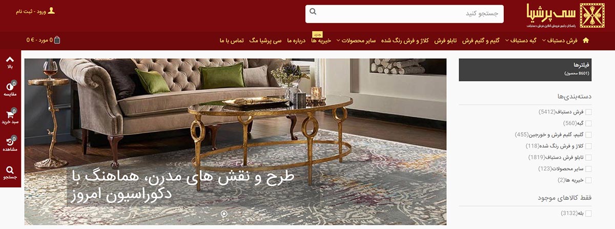 سی پرشیا فروشگاه آنلاینی است که به صورت تخصصی در زمینه بازاریابی فرش دستباف فعالیت دارد، به همین علت جایگاه ابتدایی این لیست را به این وبسایت اختصاص داده ام.