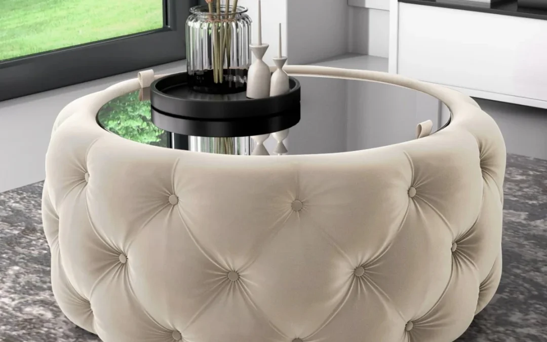 • لمسه‌دوزی: یکی از بارزترین نشانه‌های میز جلو مبلی چستر، لمسه‌دوزی‌های عمیق و منظم روی بدنه یا حتی سطح میز است. این جزئیات به فضای پذیرایی تو اصالت و جذابیت خاصی می‌بخشه.