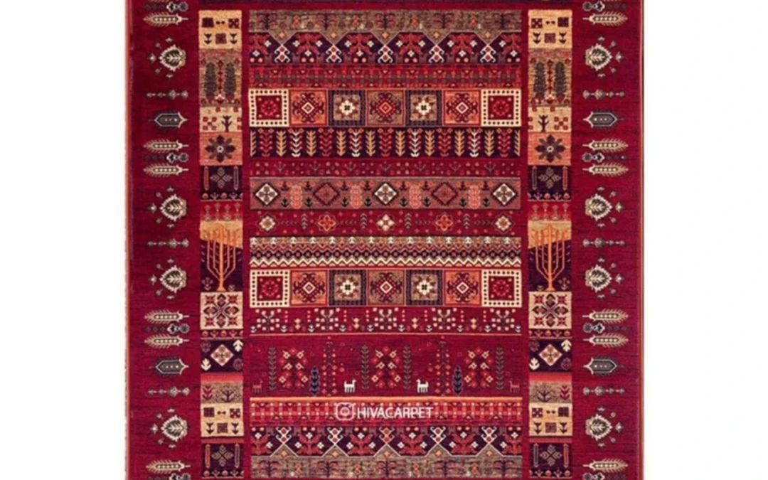 فرش ماشینی 500 شانه ستاره طلایی ملت زمینه لاکی حاشیه لاکی مدل بلوچ 112