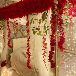 – استفاده از ریسه های گل برای تزیین اتاق خواب عروس: