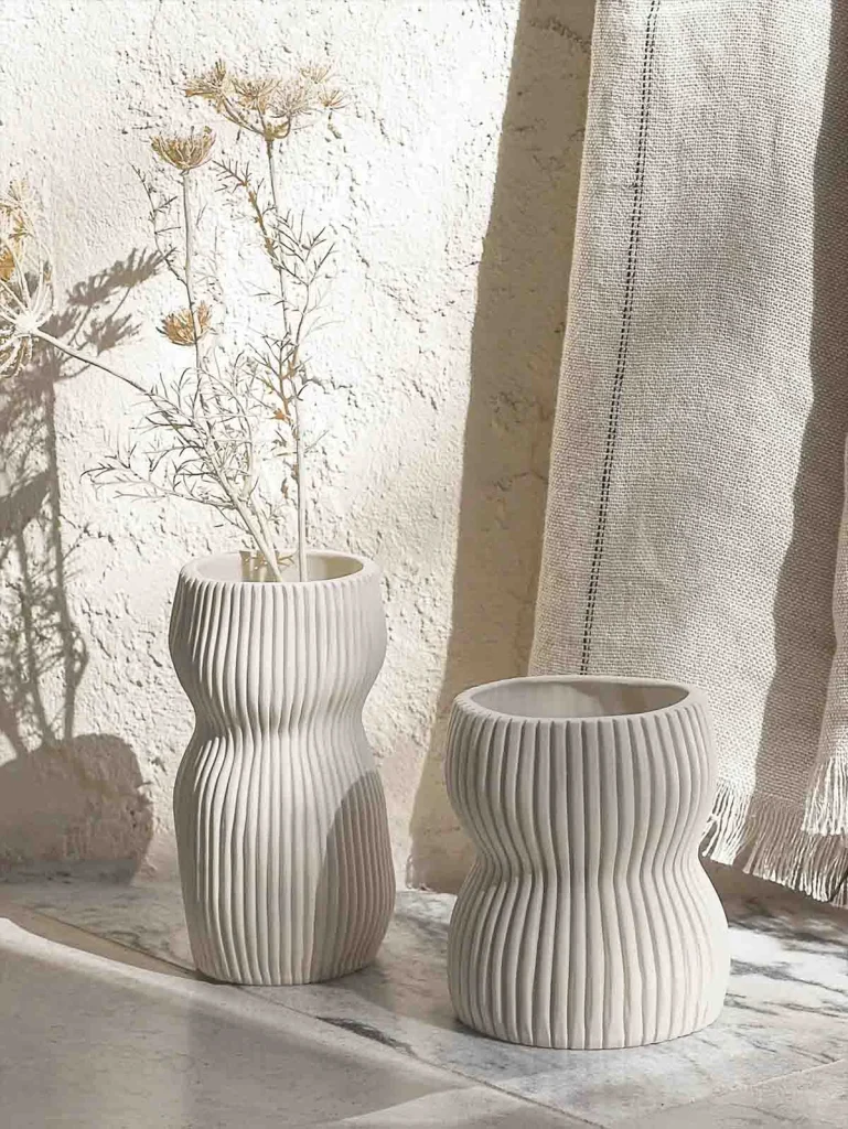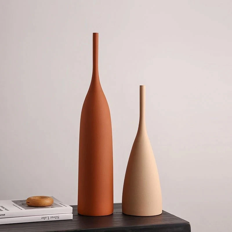 2. گلدان تزیینی با سطح مات و رنگهای خنثی گرم