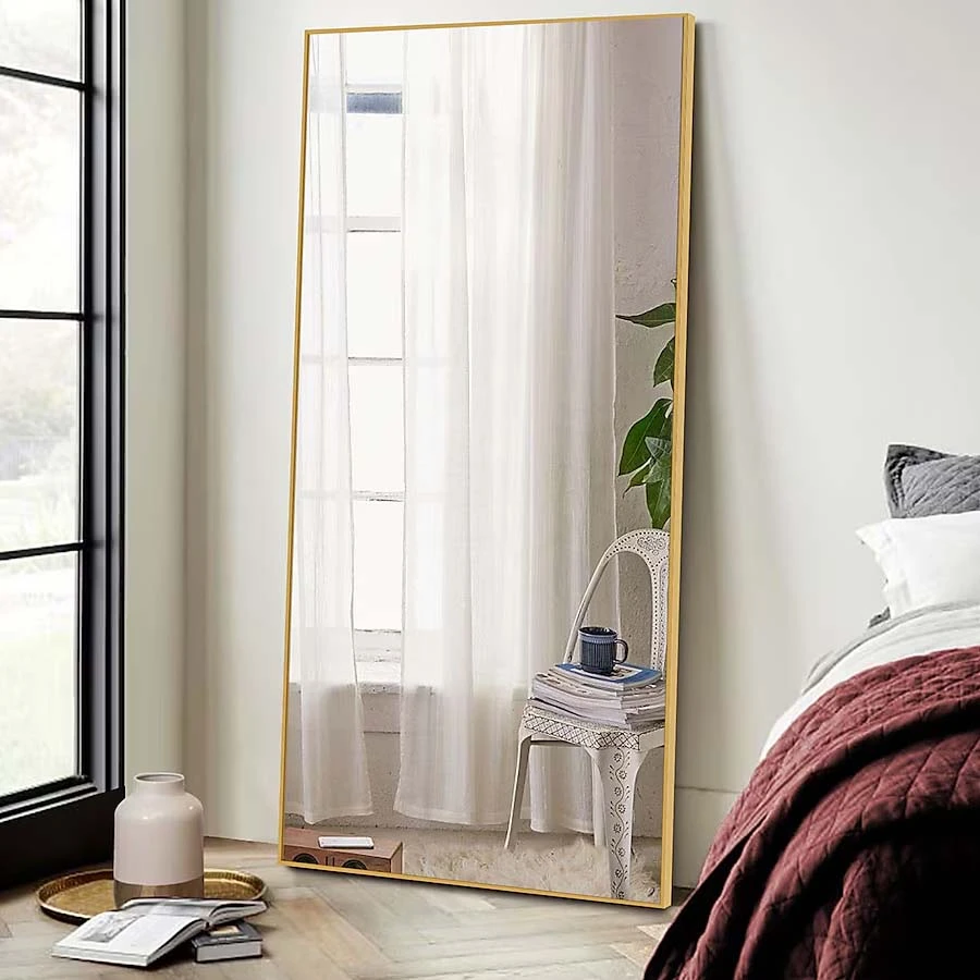 آینه دکوراتیو طلایی قدی ایستاده مینیمال اتاق خواب