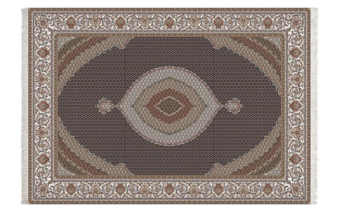 فرش ماشینی 1200 شانه محتشم زمینه خاکستری حاشیه خاکی مدل 2555009012
