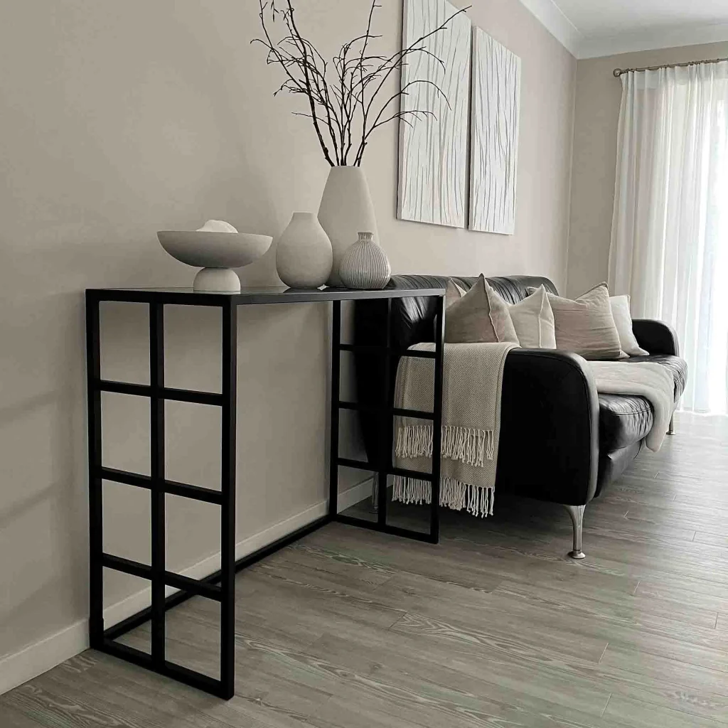 ۱. کنسول تمام فلزی مشکی؛ برای دکوراسیون مدرن و مینیمالیستی
