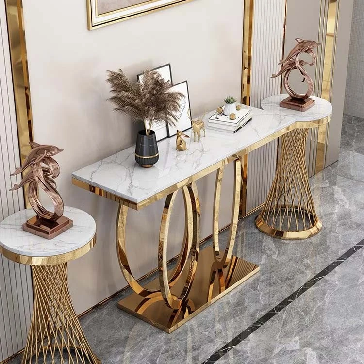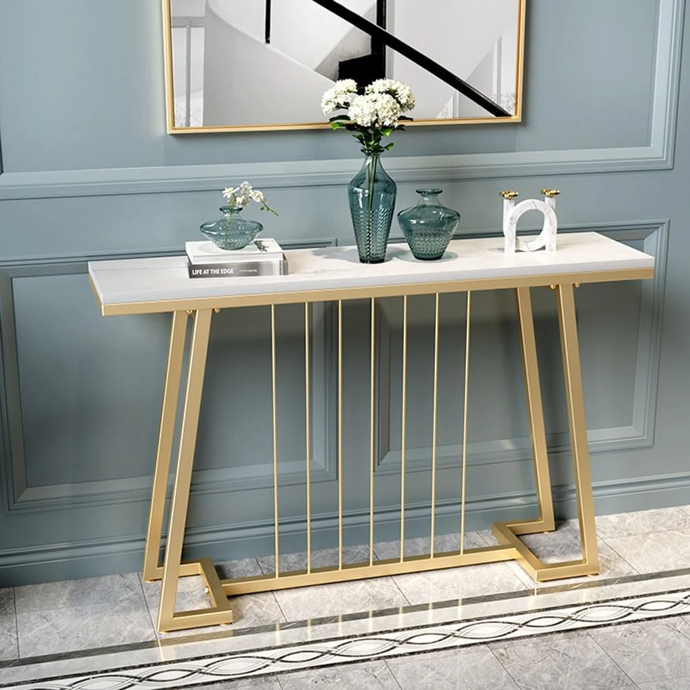 ۳. کنسول فلزی طلایی و مرمر سفید؛ برای دکوراسیون لوکس و کلاسیک
