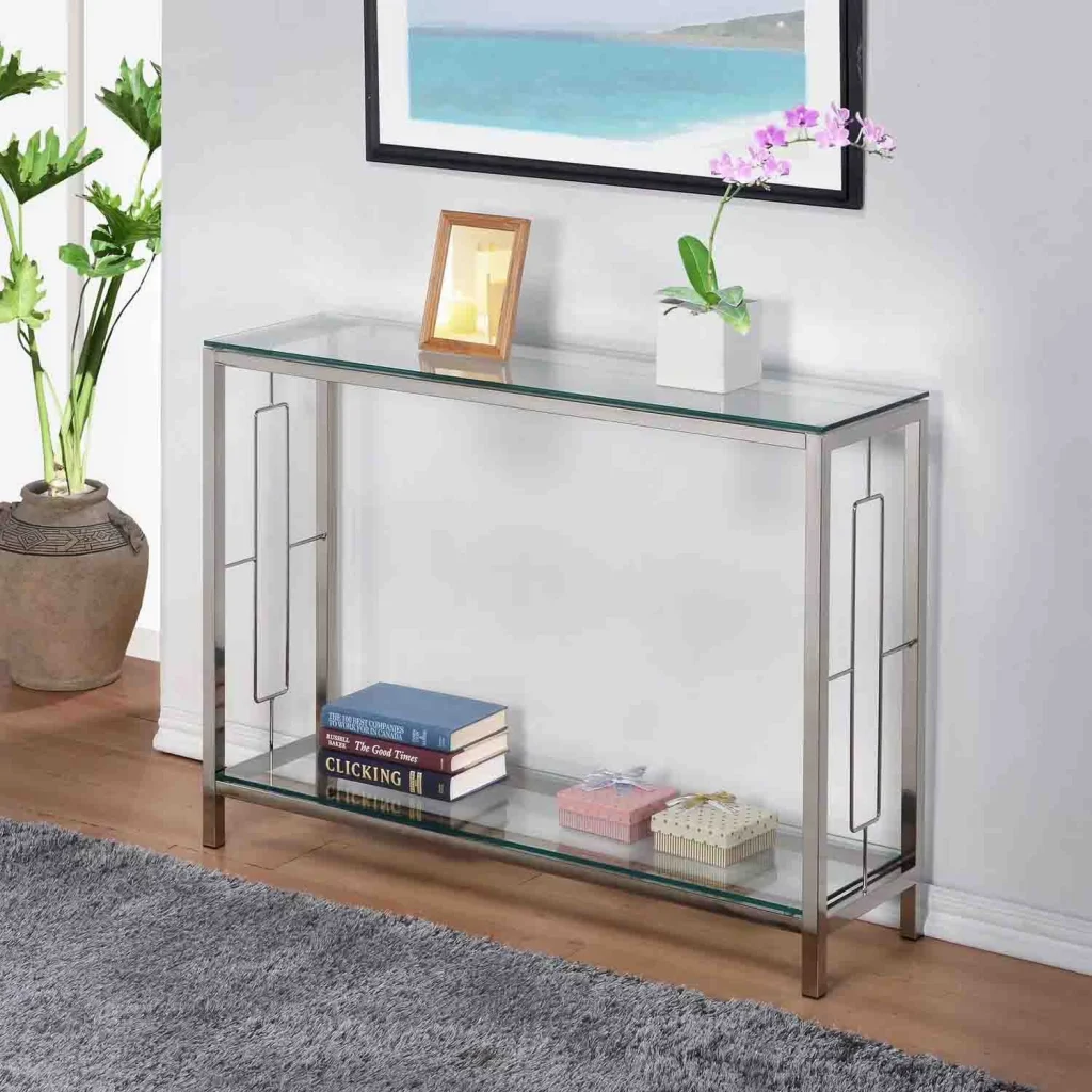 ۴. کنسول فلزی شیشهای؛ برای دکوراسیون مدرن و مینیمالیستی