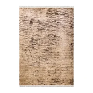 فرش ماشینی زانیس مدل مدرن طرح وینتیج زمینه کرم قهوه ای