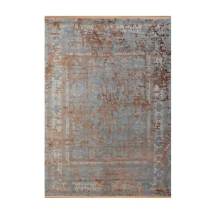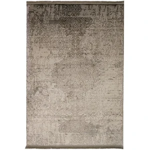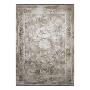 فرش ماشینی ابریشمی پرشین طرح وینتیج کد 90049 زمینه طوسی