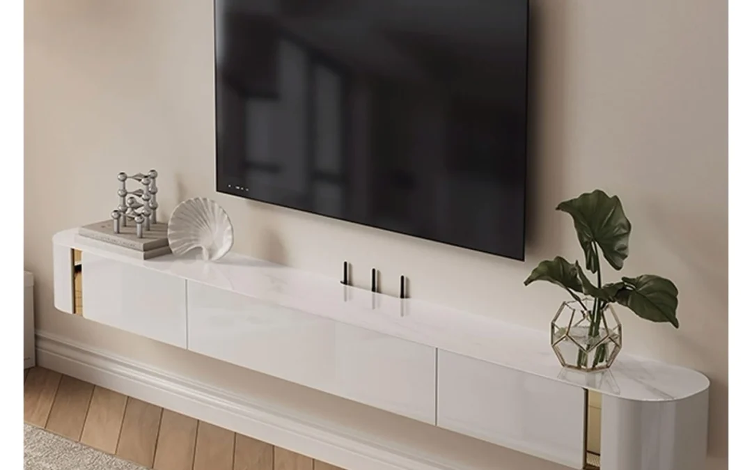 نور مخفی باعث جلوه بیشتر میز و ایجاد فضایی مدرن و لوکس میشود. - میز تلویزیون شناور (دیواری):