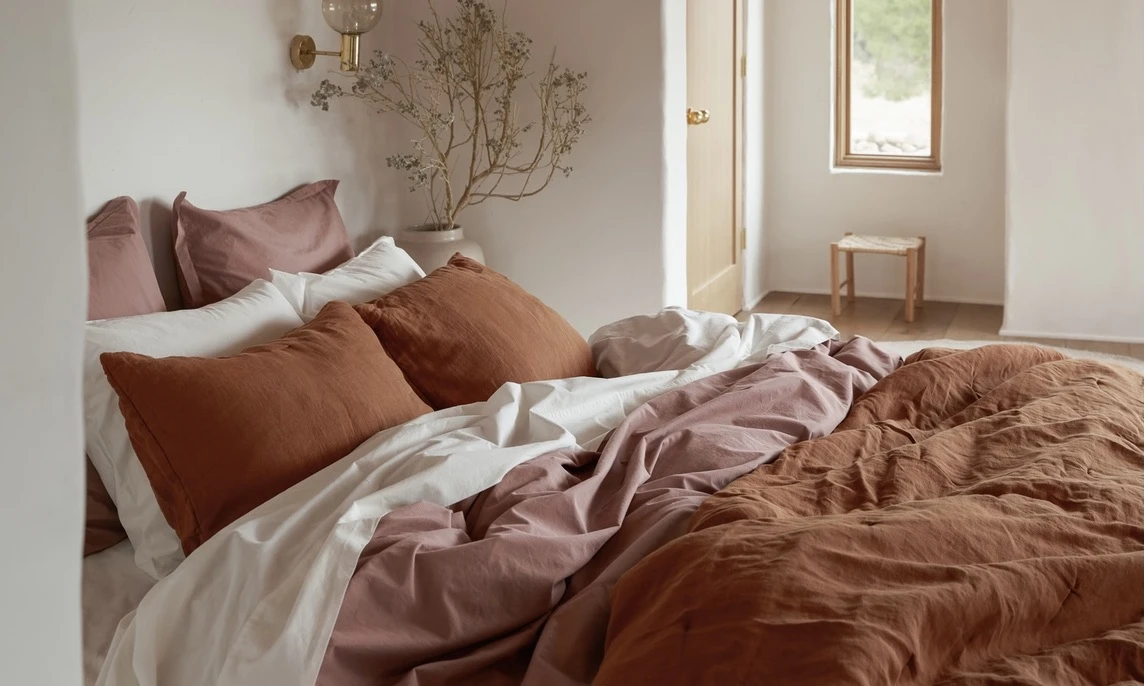 بافت روبالشی، یه بعد جدید به طراحی خواب اضافه میکنه. روبالشیهای لنین با ظاهر چروک، یا پنبههای سنگشور شده، حس بیتکلفی میدن که توی سبکهای روستیک یا وابی سابی بی نظیره. ترکیبش با رنگهای خاموش مثل خاکستری موشی یا سفید مات، خیلی ترند شده.
