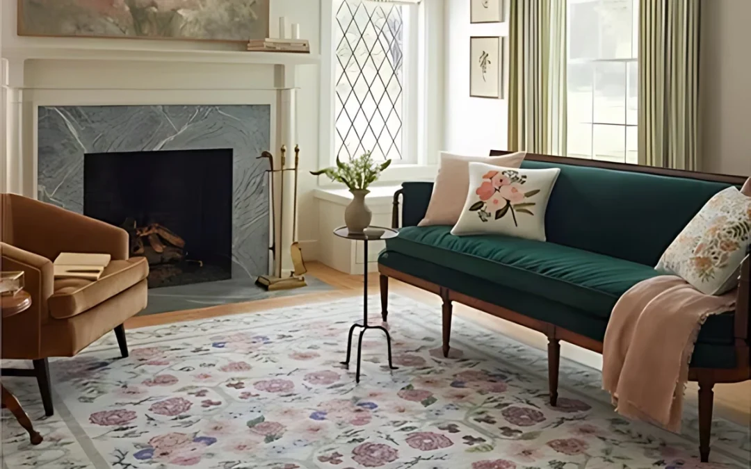 ۲. ایجاد تعادل در دکوراسیون شلوغ با فرش ساده
