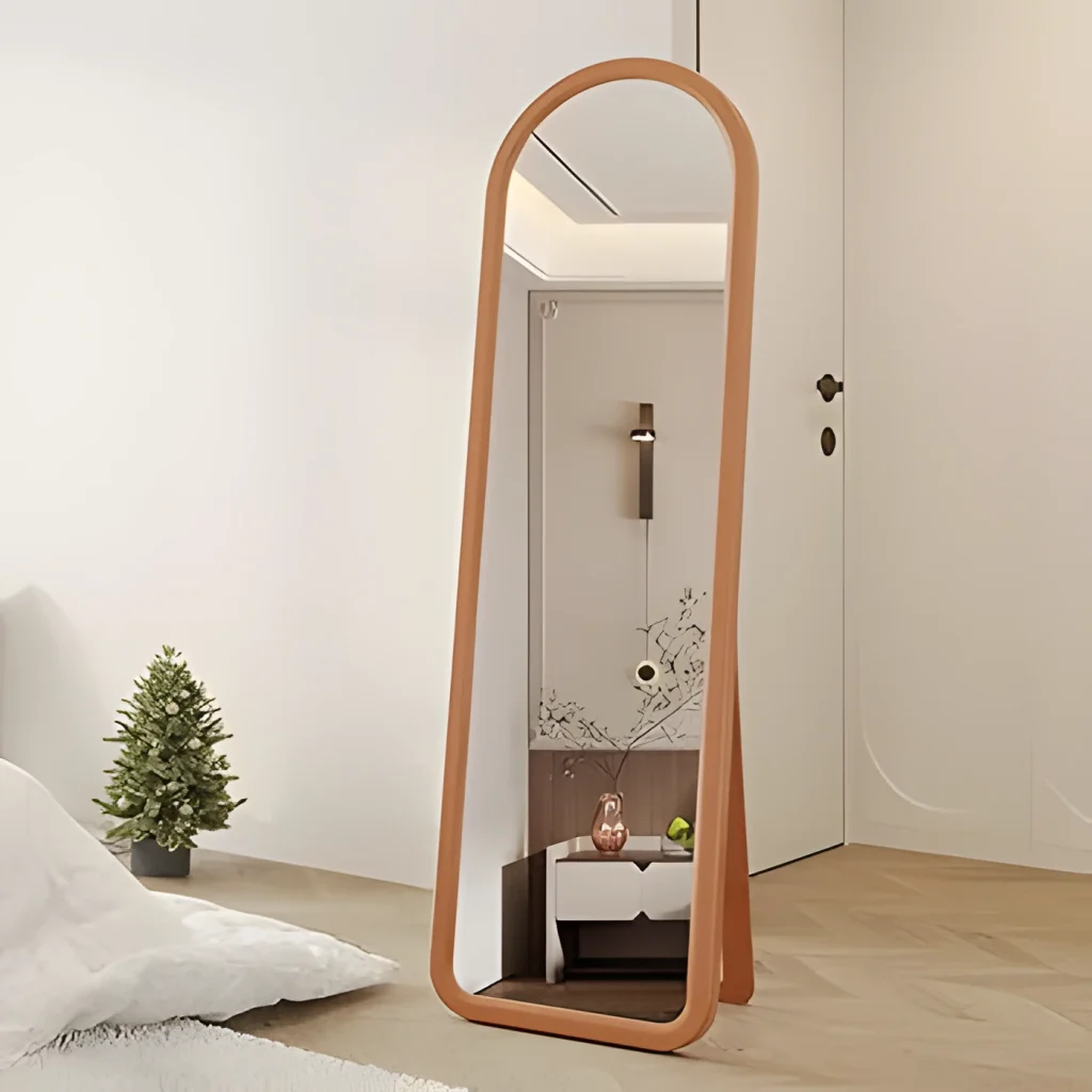 ۲. آینه ایستاده با فرم قوسدار – مدرن، لطیف، و اینستاگرامی