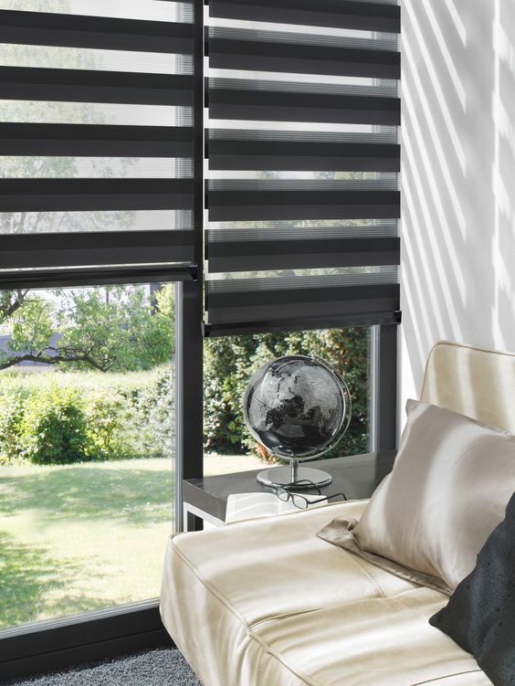 همچنین شما می توانید برای درب بالکن و تراس خود، از پرده های زبرا مدل راه راه استفاده کنید. این مدل از پرده زبرا برای شب و روز قابل استفاده است و به شما این امکان را می دهد تا با تنظیم آن نور بیشتری را وارد خانه خود کنید. برای مثال به عکس زیر دقت کنید.