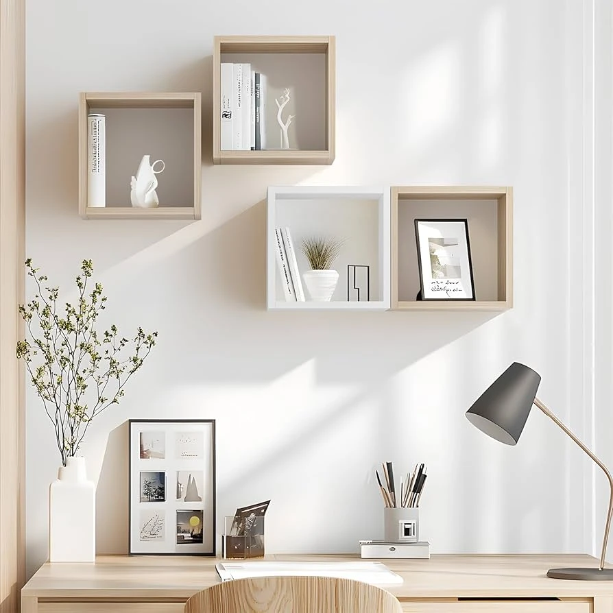 برای فضاهای مدرن، باکسهای دیواری با ترکیب دو رنگ، مثل مشکی و چوب روشن یا سفید و آبی نفتی، انتخاب جسورانه و جذابیه. این باکسها معمولاً به صورت گروهی چیده میشن و با بازی در رنگها میتونی دیوار رو به یک گالری شخصی تبدیل کنی.